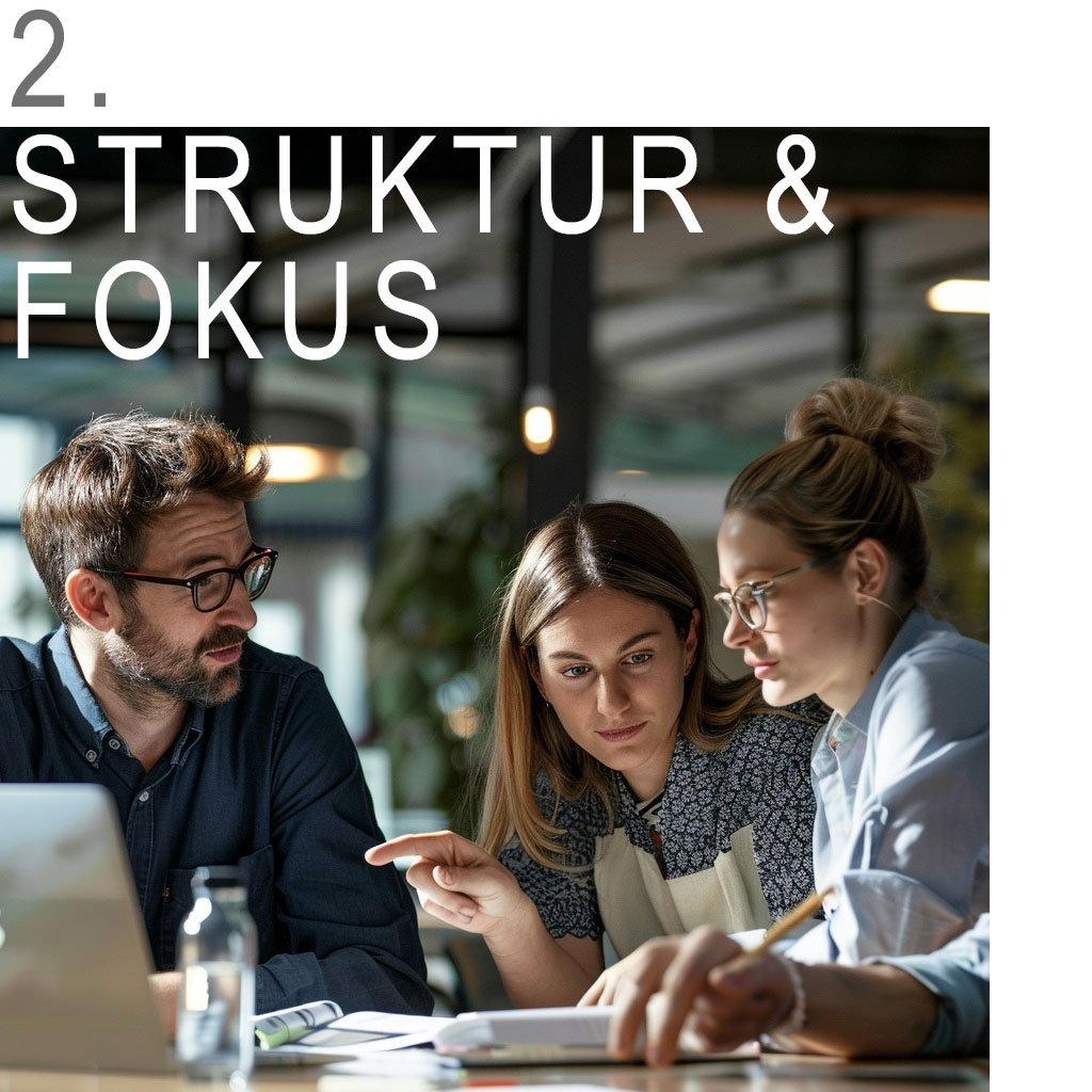 Auf dieser Basis definieren wir klare Schwerpunkte, Inhalte und eine passgenaue Vorgehensweise.
